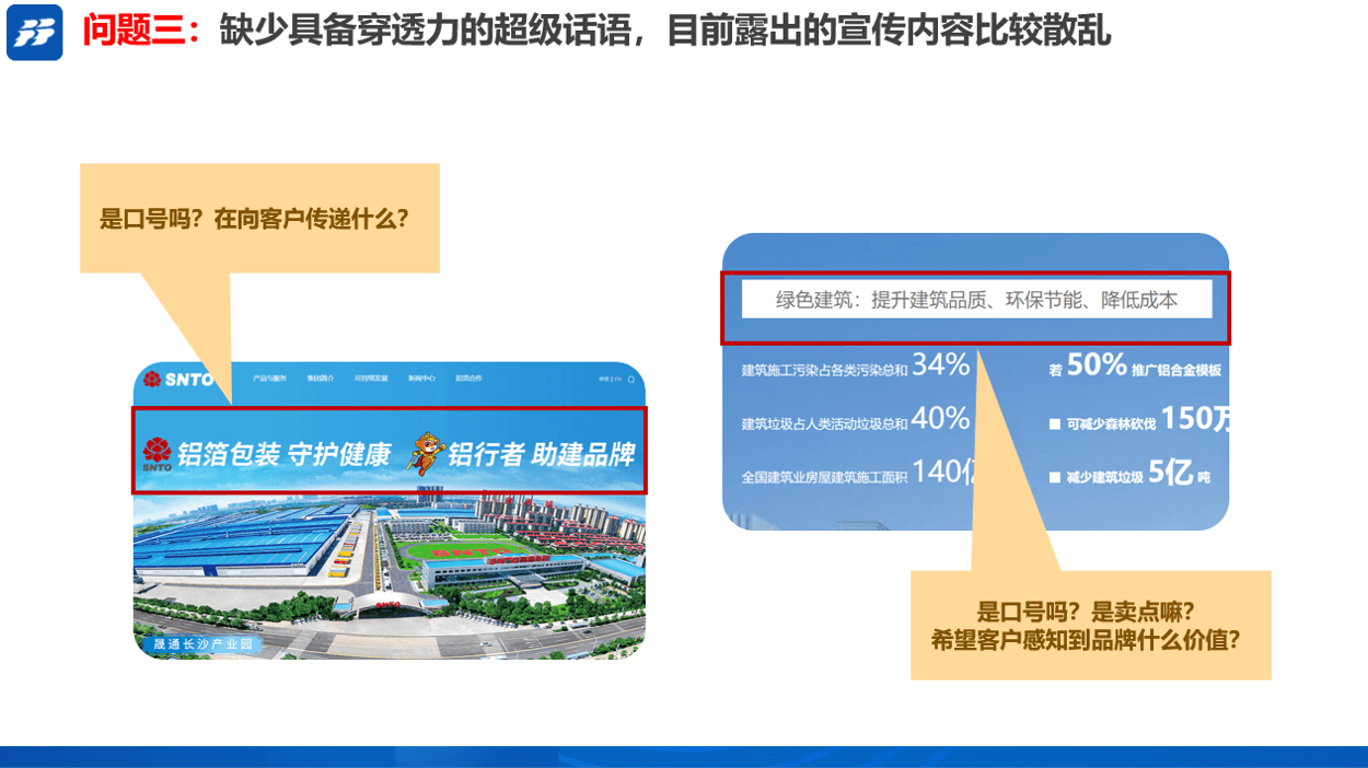 问题三:缺少具备穿透力的超级话语,目前露出的宣传内容比较散乱。