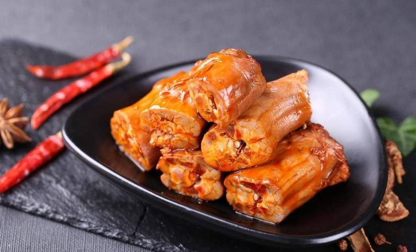 鸭脖属于酱汁类食品(主要是鸭脖,酱板鸭、包括酱鸭翅、酱鸭脖、酱鸭拐、酱鸭掌、酱鸭舌、酱牛肉、酱板鱼、酱板干子、酱板藕等),酱汁类食品通过多种香料浸泡,然后经过风干、烤制等工序精致而成,成品色泽深红,具有香、辣、甘、麻、咸、 酥、绵等特点,是一道开胃、佐酒佳肴。