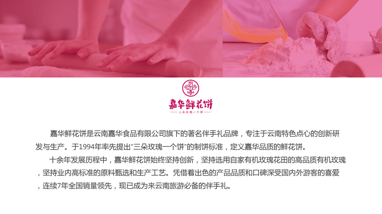 十余年发展历程中,嘉华鲜花饼始终坚持创新,坚持选用自家有机玫瑰花田的高品质有机玫瑰,坚持业内高标准的原料甄选和生产工艺。凭借着出色的产品品质和口碑深受国内外游客的喜爱,连续7年全国销量领先,现已成为来云南旅游必备的伴手礼。