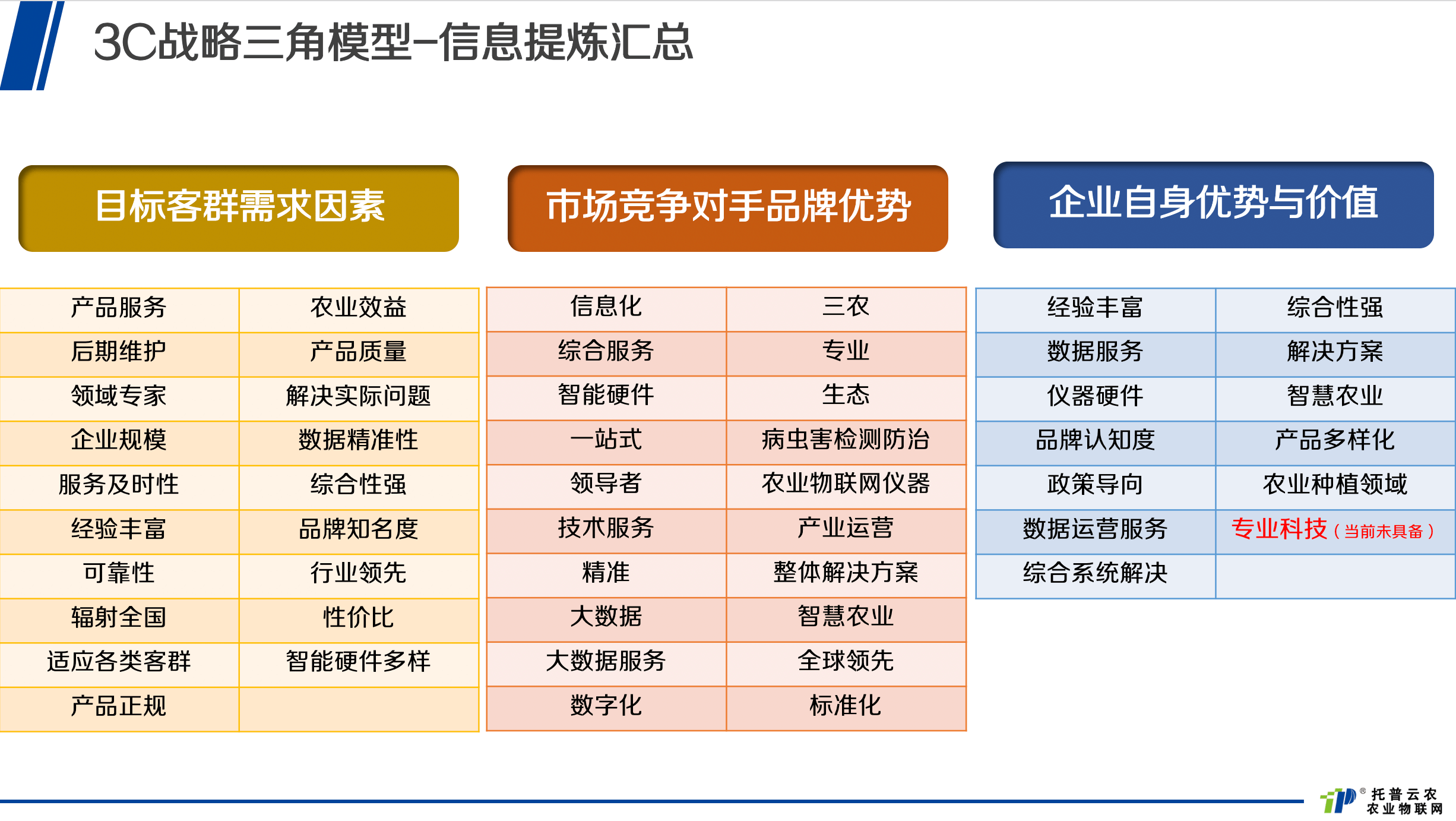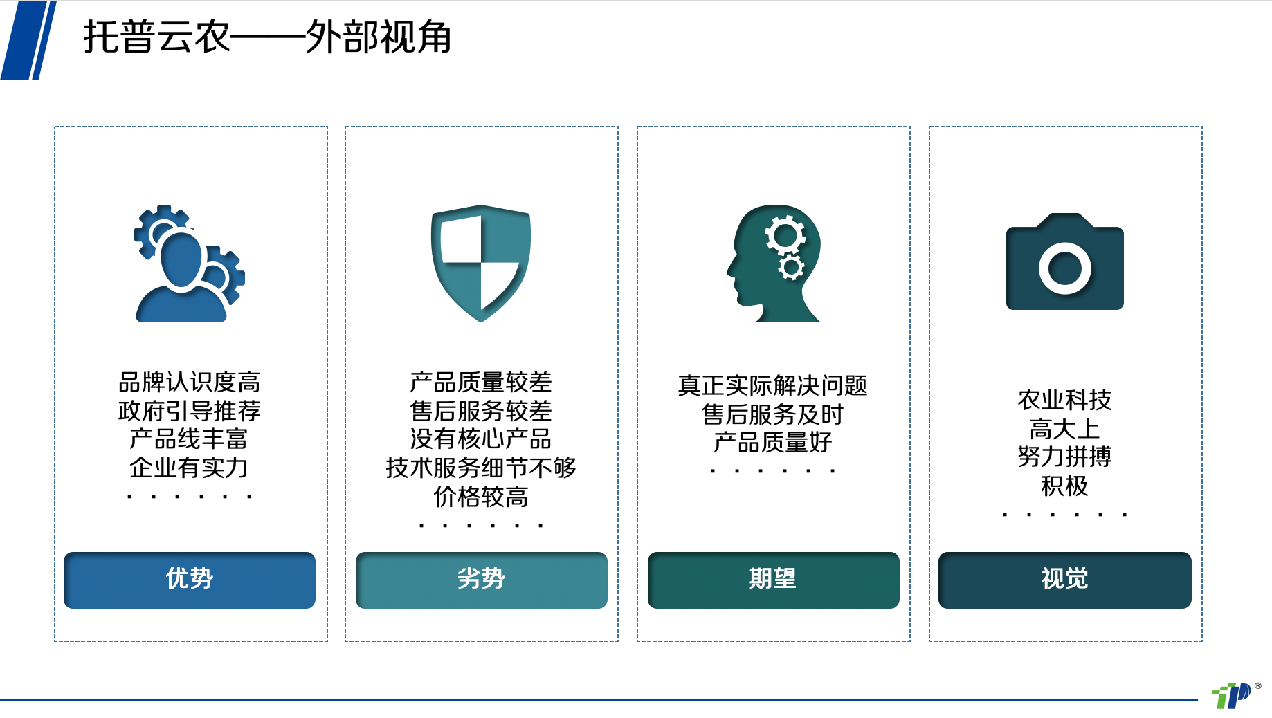 ⑤ 品牌认知:在业内,托普云农具备相应的知名度,但对目前的业务系统理解不够。