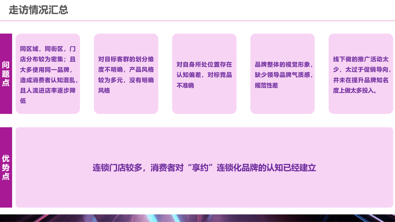 1、同区域,同街区,门店分布较为密集;且大多使用同一品牌,造成消费者认知混乱,且人流进店率逐步降低,销量呈下滑趋势;