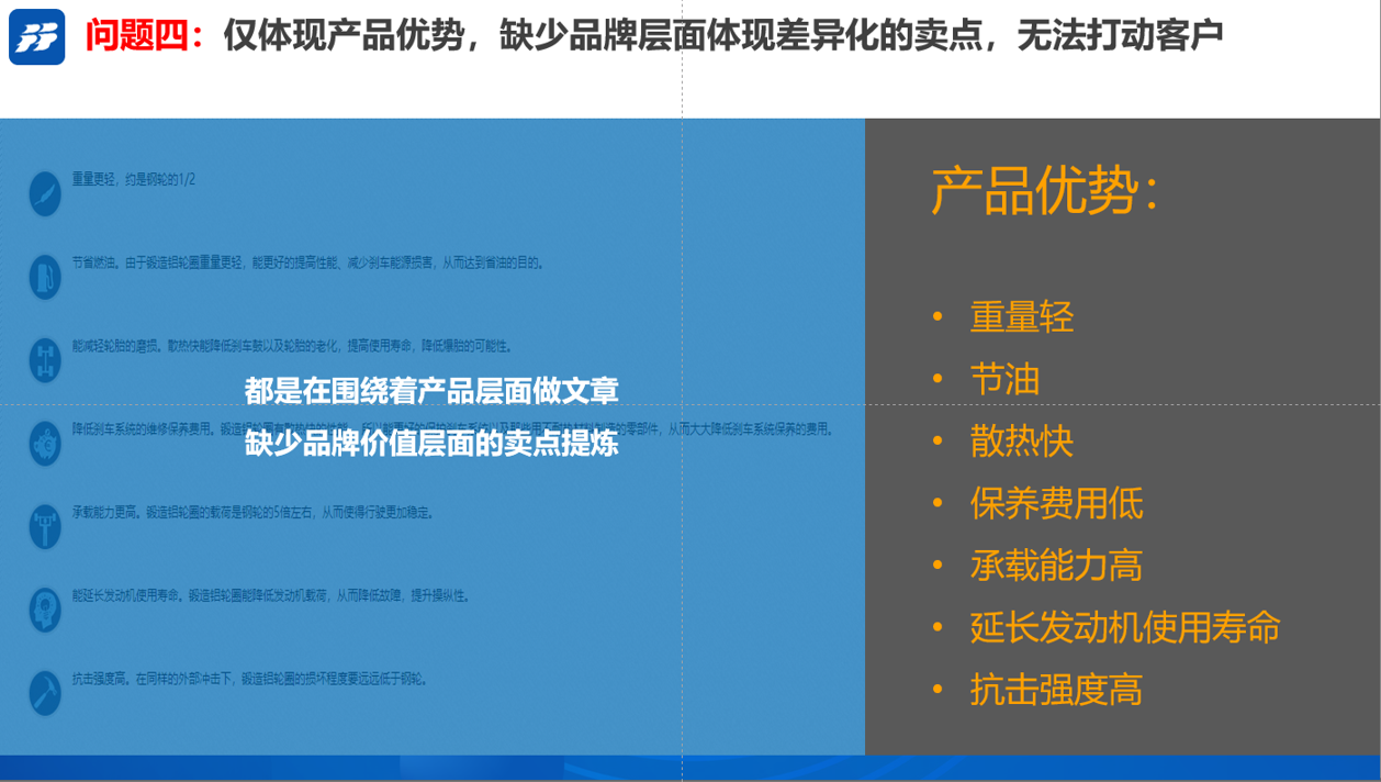 4、问题四:仅在体现产品优势,缺少品牌层面体现差异化的卖点,无法打动客户;