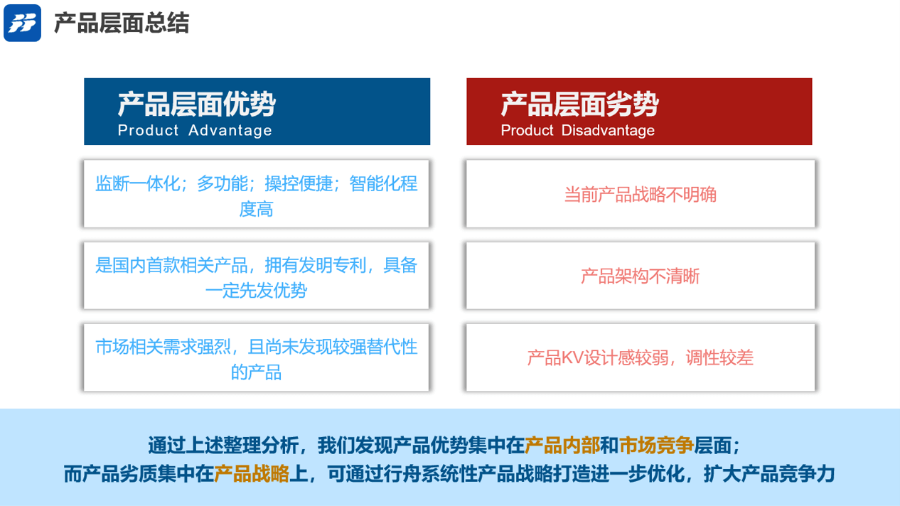 首先,我们相较于市场中传统燃气检测和安防产品,来看下泰和“燃气安盾”系列产品具备哪些优势?对比后我们发现,目前市场中确实还没有与泰和相同的升级产品,多为漏气保护/警报等常规性产品,燃气安盾系列产品竞争优势非常明明显:监断一体化、多功能、操控便捷、智能化程度高。尽管产品的功能做了很大的创新升级,但是在产品的战略策划上仍在欠缺一些思考,比如对产品架构的梳理,哪一款将作为核心爆品,哪一款作为形象,哪一款又作为防御性产品等,都还没有进一步思考,并且产品的核心价值提炼,如卖点,再到宣传形象,如主KV都未呈现,需要后期进行系统策划。
