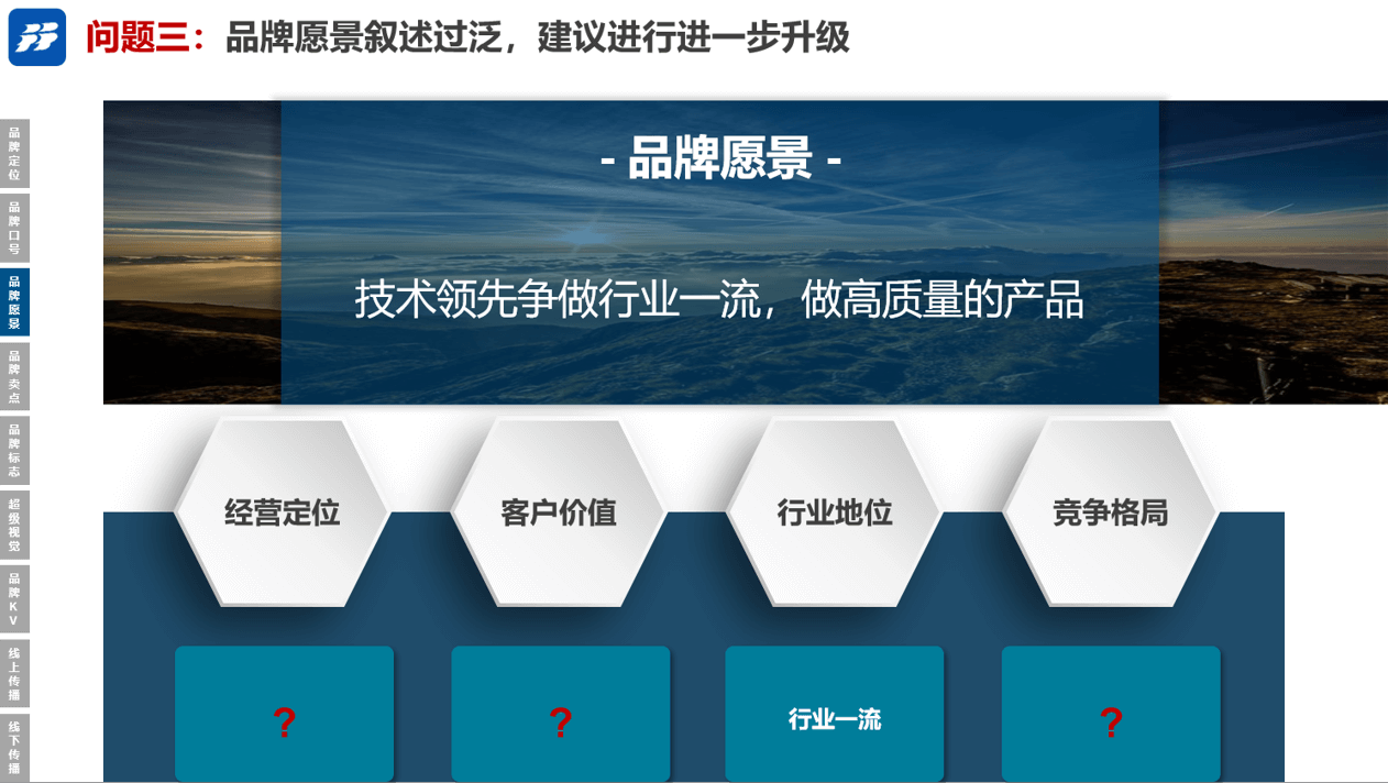 问题三:品牌愿景叙述过泛,缺少对经营定位、客户价值和竞争格局的思考,建议进行进一步升级