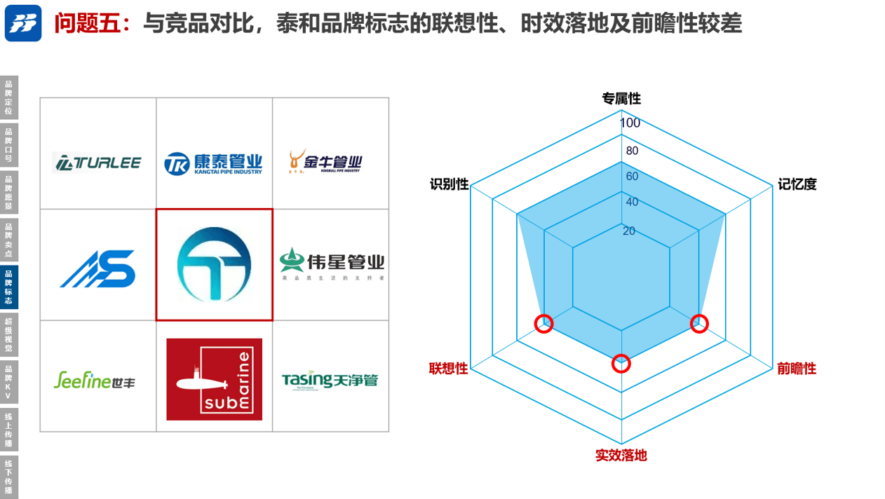 问题五:与竞品对比,泰和品牌标志的联想性、时效落地及前瞻性较差