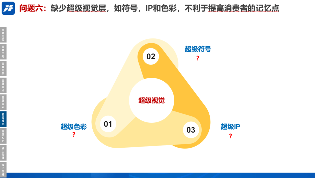问题六:缺少超级视觉层,如符号,IP和色彩,不利于提高消费者的记忆点