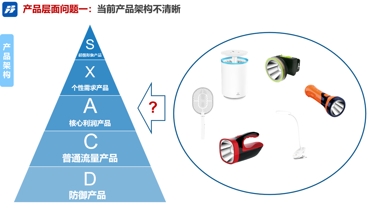 1、问题一:产品架构不够清晰,品类拓展相关性不强;
