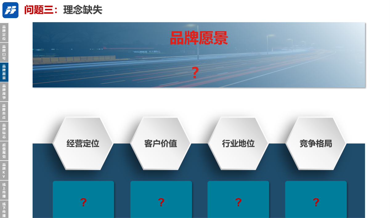 7、问题七:品牌理念体系缺失;