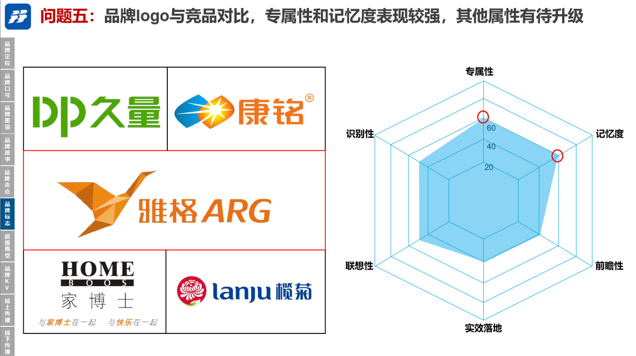 10、问题十:品牌logo与竞品对比,专属性和记忆度表现较强,其他属性有待升级;