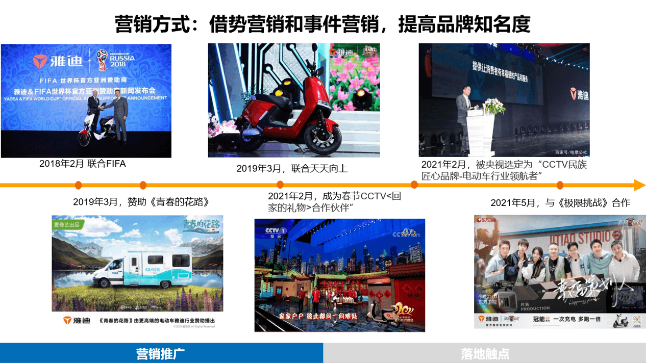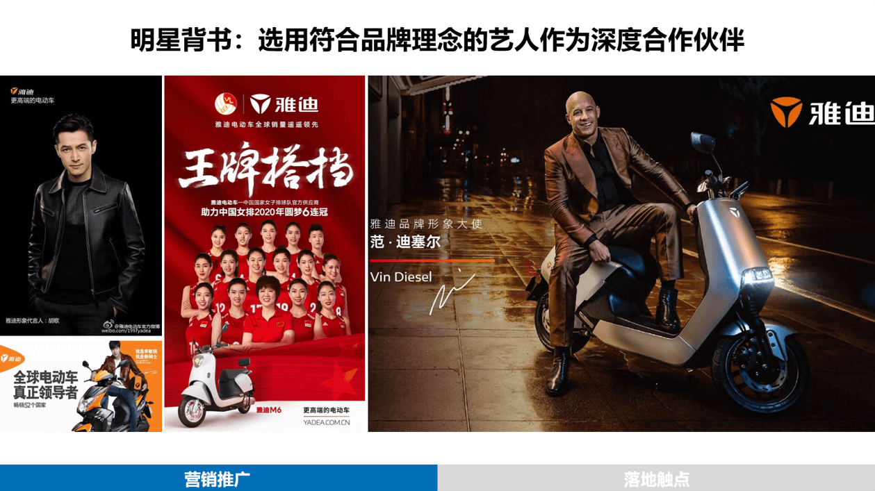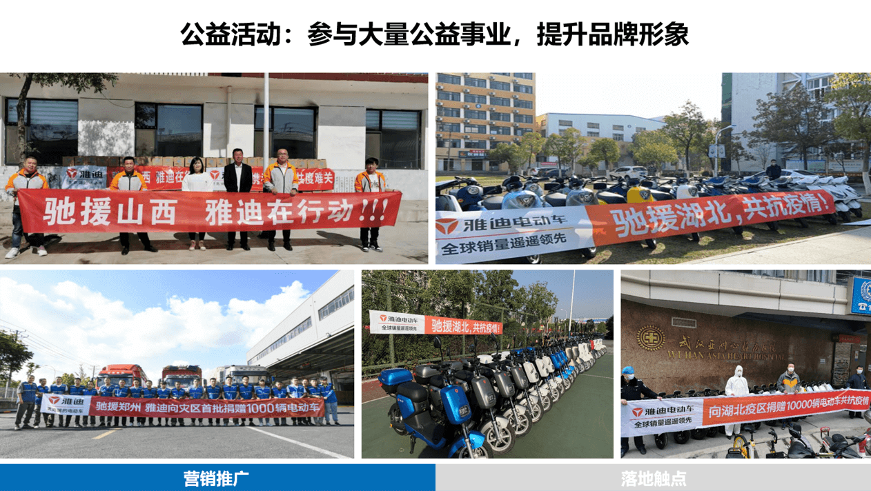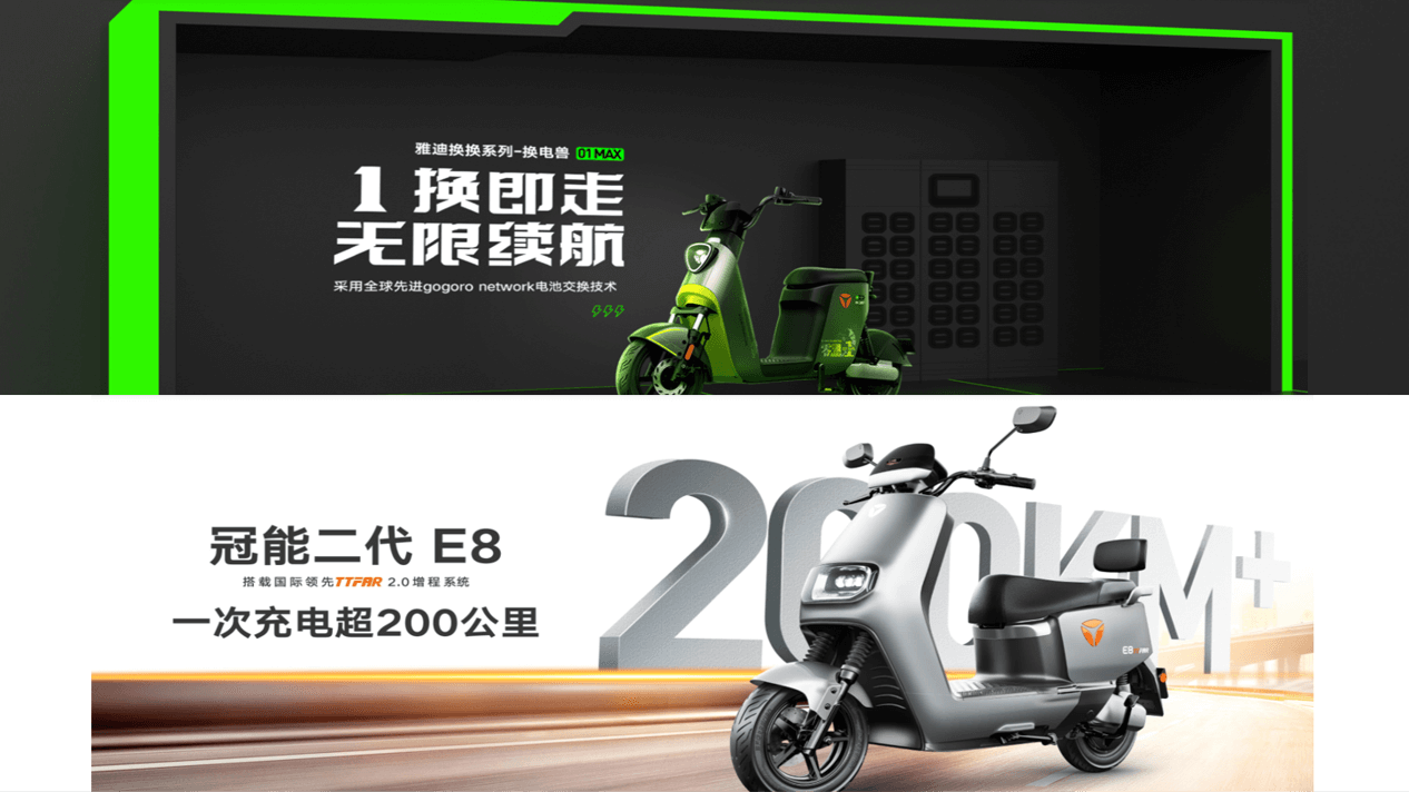 当然,我们通过对比绿源与雅迪,来看一下市场中友商是如何进行品牌打造的。绿源主要围绕着【超续航】展开,雅迪则聚焦【更高端】。两者定位的差异化较为明显,而且均围绕着一个点进行穿透。对比之下,豪爵过往更多的是依靠产品力获得市场的认可,品牌还未全面发力,未来空间巨大。