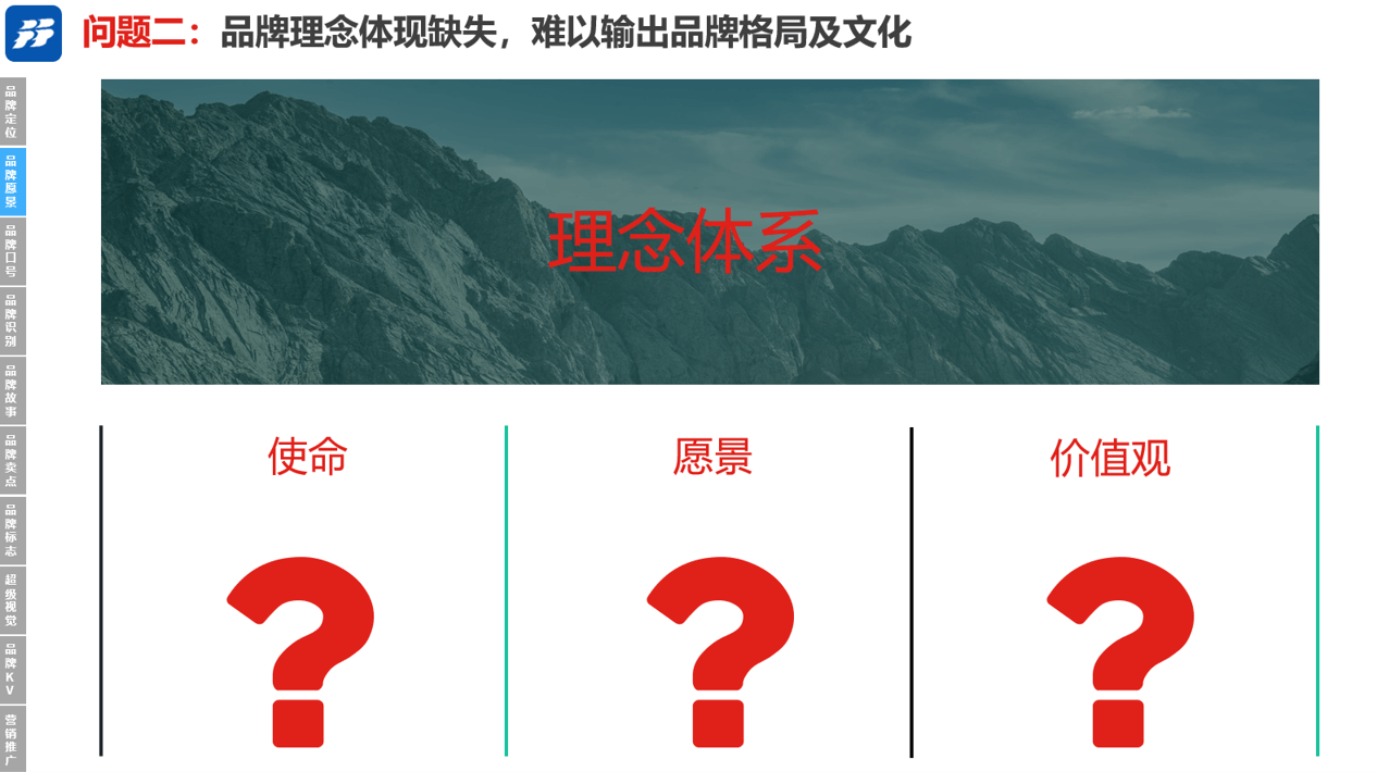 问题二:品牌理念体现缺失,难以输出品牌格局及文化
