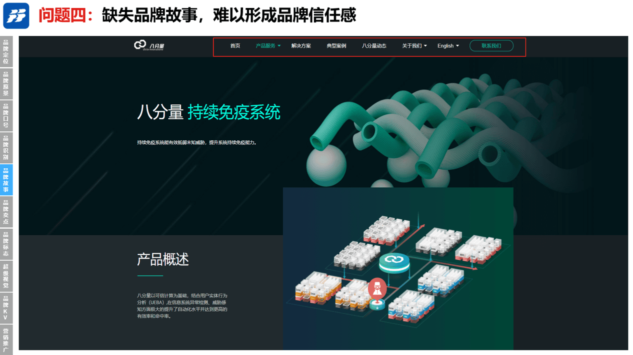 八分量目前面临品牌战略不清,整体不够体系化等问题,需全面升级品牌。行舟品牌认为八分量面临的问题需要通过品牌的全面系统塑造来解决,行舟16年沉淀的大定位理论,专注于助力企业穿透客户心智。在实现企业目标之前,我们先初步来看下,八分量存在哪些问题?我们利用行舟的大定位工具对其进行诊断,我们初步分析品牌存在16大问题: