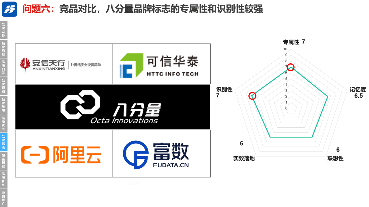 问题七:竞品对比,八分量品牌标志的专属性和识别性较强