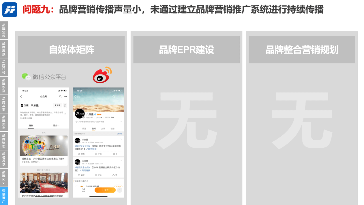 问题十:品牌营销传播声量小,未通过建立品牌营销推广系统进行持续传播
