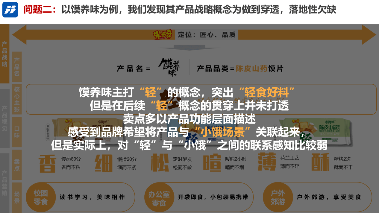 问题二:以馍养味为例,我们发现其产品战略概念为做到穿透,落地性欠缺;