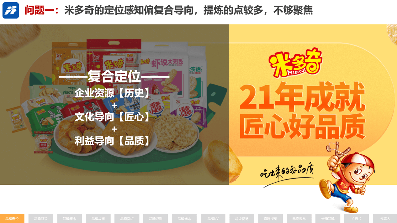 问题一:米多奇的定位感知偏复合导向,提炼的点较多,不够聚焦;