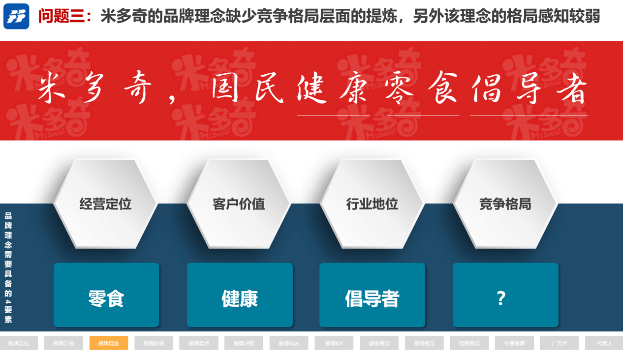 问题三:米多奇的品牌理念缺少竞争格局层面的提炼,另外该理念的格局感知较弱;