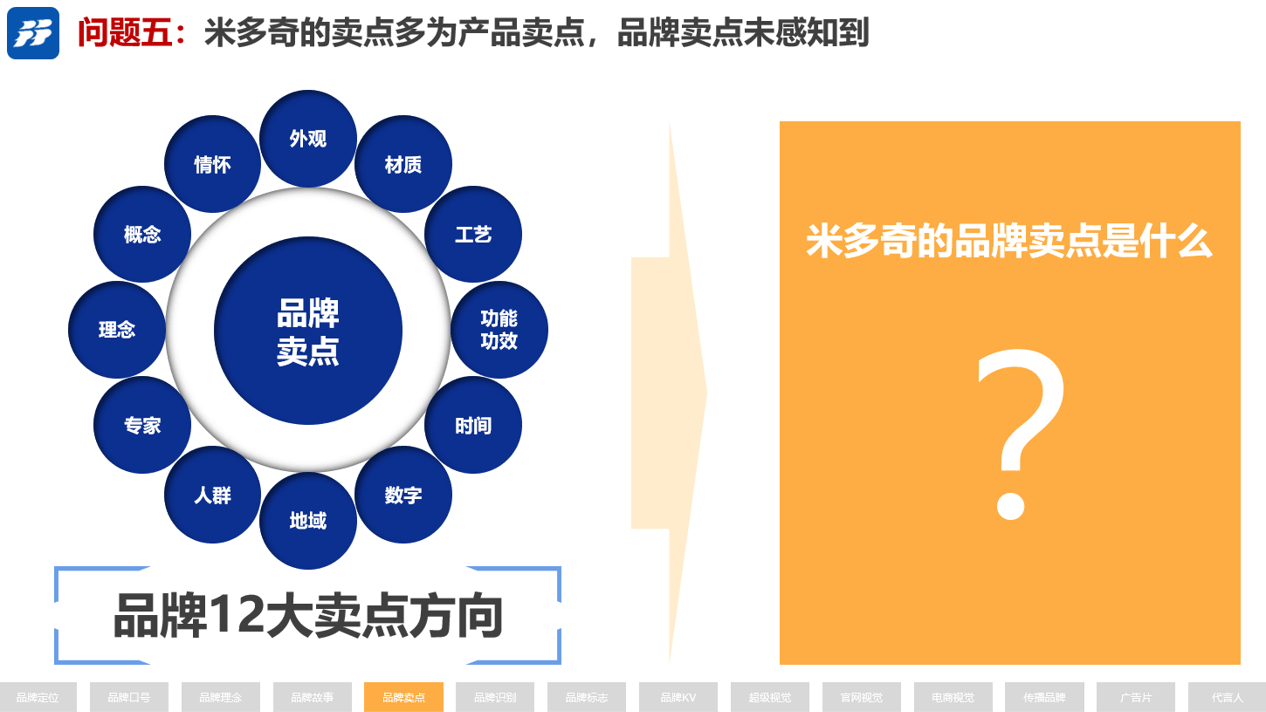 问题五:米多奇的卖点多为产品卖点,品牌卖点未感知到;