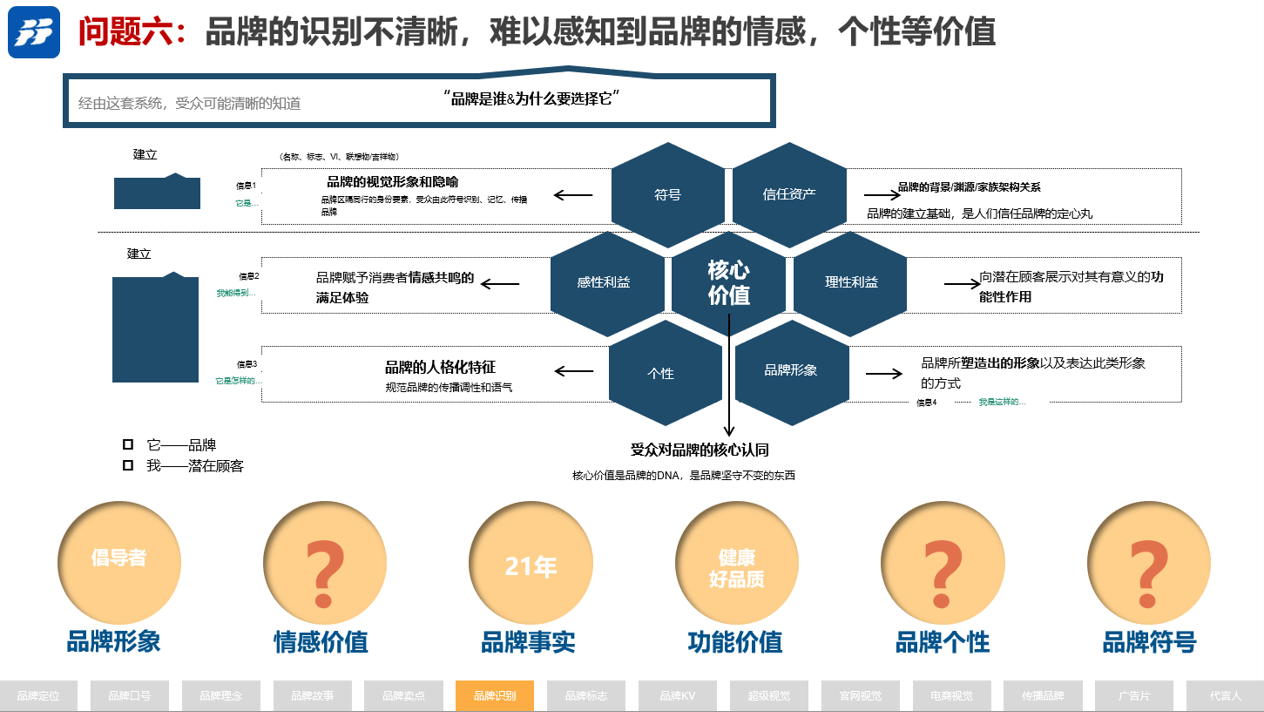 问题六:品牌的识别不清晰,难以感知到品牌的情感,个性等价值;