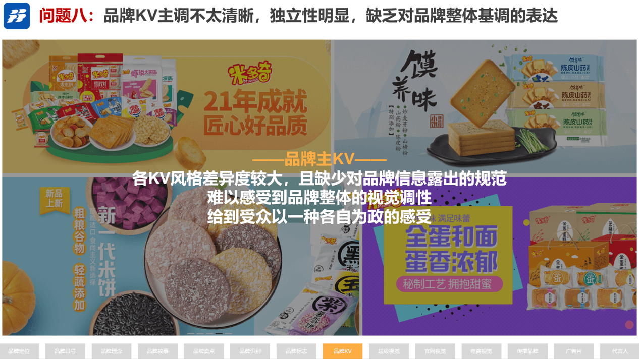 问题八:品牌KV主调不太清晰,独立性明显,缺乏对品牌整体基调的表达;