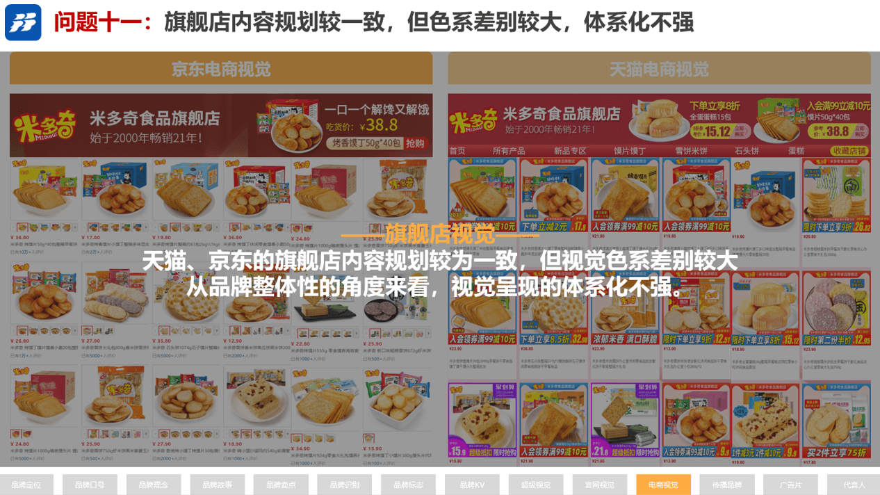 问题十一:旗舰店内容规划较一致,但色系差别较大,体系化不强;
