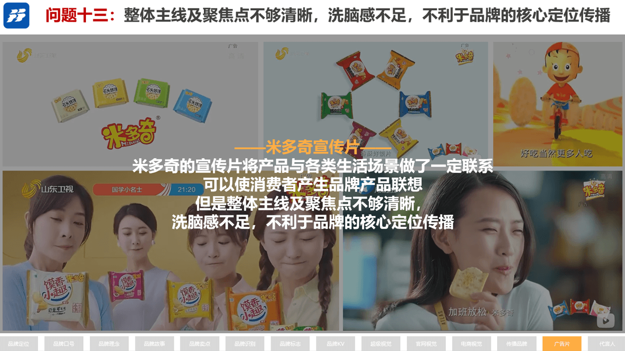 问题十三:整体主线及聚焦点不够清晰,洗脑感不足,不利于品牌的核心定位传播;