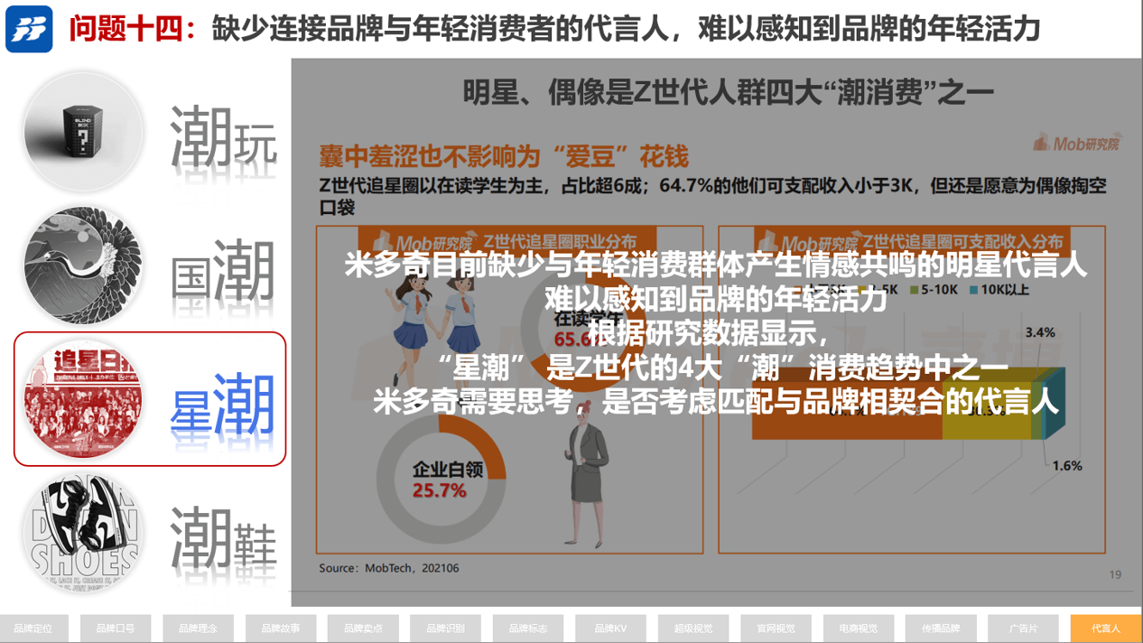 问题十四:缺少连接品牌与年轻消费者的代言人,难以感知到品牌的年轻活力。