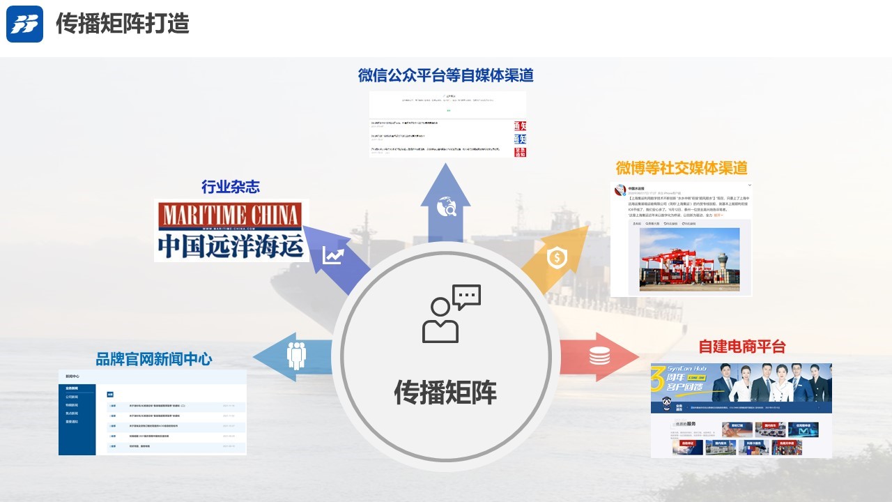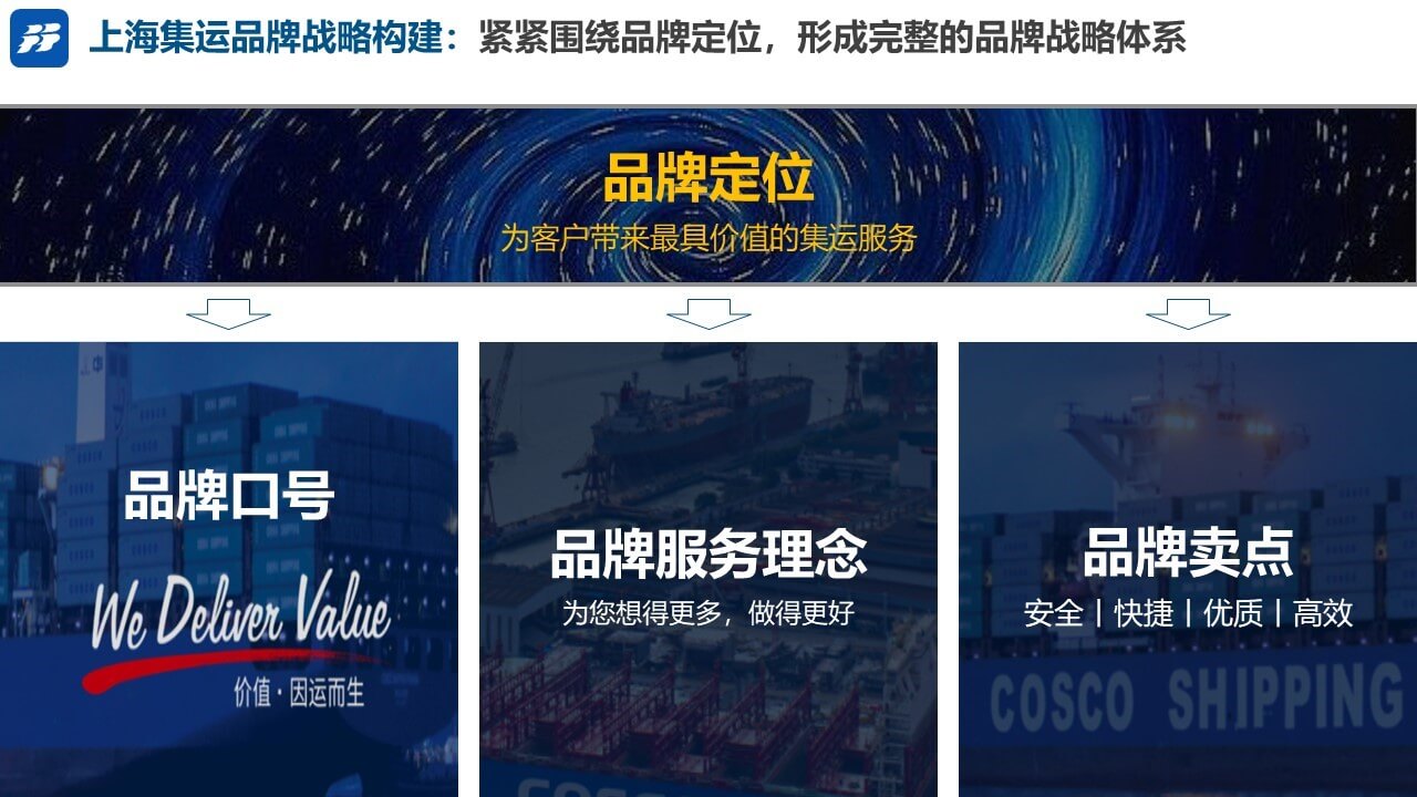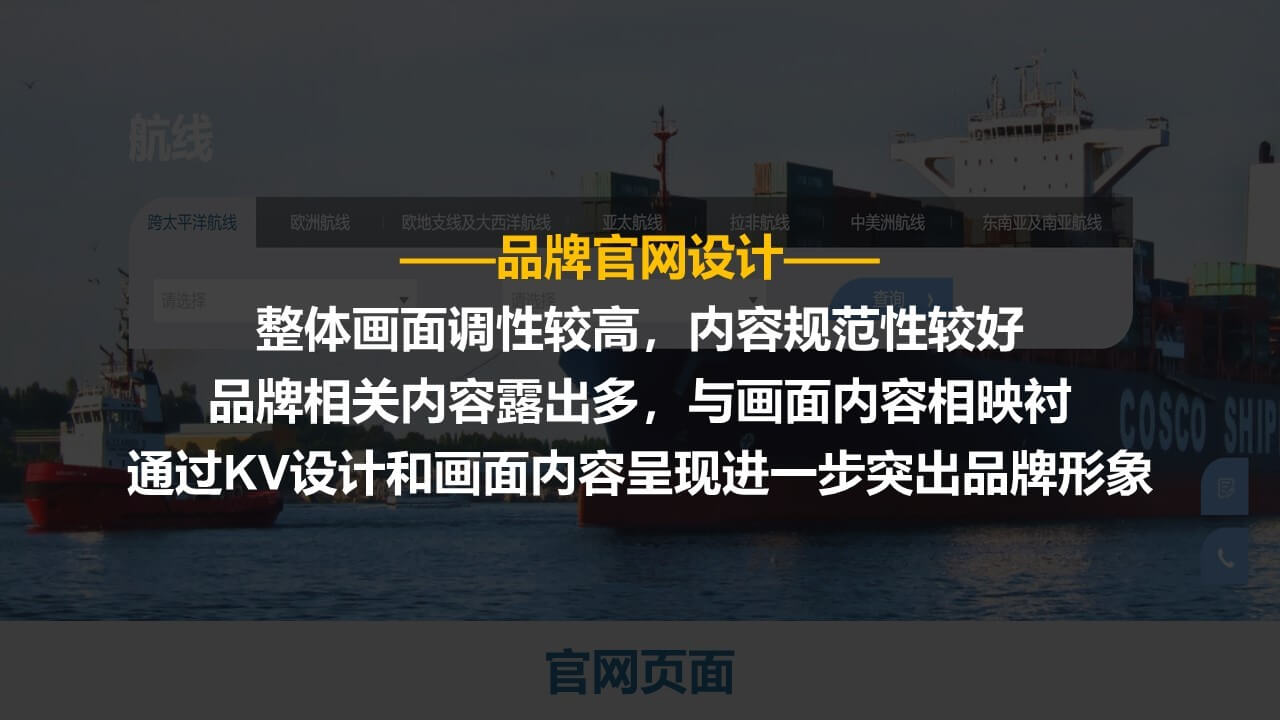 我们基于汇利达的需求,对品牌及竞品做了初步分析。从竞品上海集运的分析过程中,我们首先可以清晰的感知到上海集运的定位——“为客户带来最具价值的集运服务”,并在后续的各类落地事项中均围绕“最具价值的服务”持续发力,视觉上,通过官网页面和KV设计,突出品牌优势和核心亮点,塑造品牌专业的形象认知。品牌传播上,上海集运系统梳理自身触点,通过系统性的传播矩阵打造提高品牌知名度,进一步完善自身品牌形象建设。
