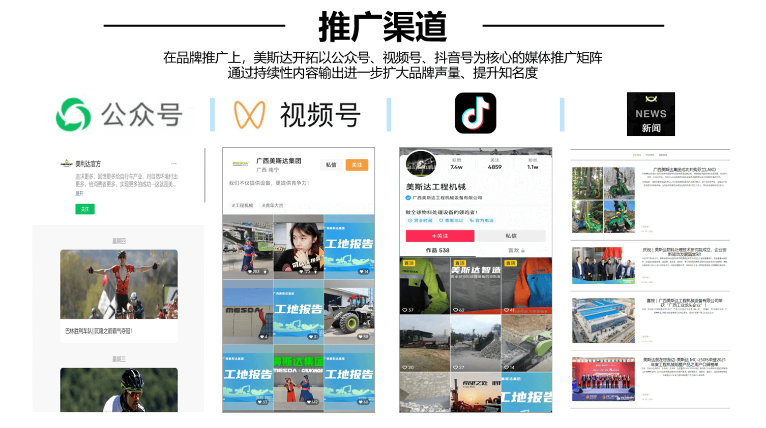 通过分析我们发现,美斯达的品类战略和品牌定位都十分明确,确定了履带移动破碎系统为主要的品类发展目标,并基于品牌实际情况和自身优势打造精准的品牌定位:专业。围绕“专业”这一核心定位,美斯达通过品牌故事、品牌形象识别、品牌卖点等一系列品牌核心战略要素的打造,将“专业”这一品牌形象突出放大,进一步将核心定位穿透市场客户的心智。