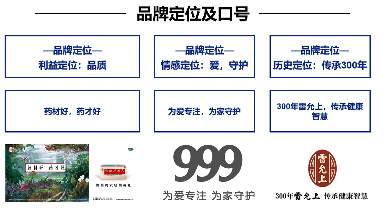 比如六味地黄丸通过打出“药材好,药才好”的口号,将品牌好品质的认知打入人心;再比如999打出“为爱专注,为家守护”的情感定位;以及主张“300年雷允上,传承健康智慧”的雷允上,都精准的找到了品牌的差异化之路!