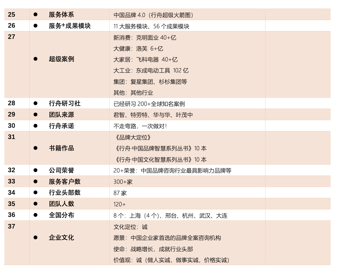 行舟品牌咨询集团37个维度介绍: