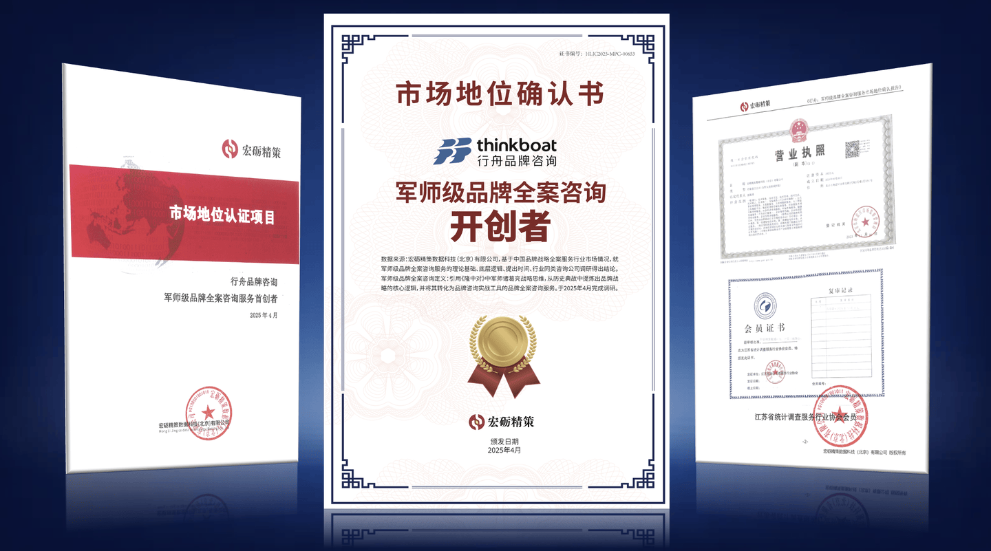 尤其是后者,一直是行舟重要的品牌智慧之来源。因此,行舟也是把自己的品牌咨询品类定义为“军师级品牌全案咨询”,并由中国书画院院长赵克南亲笔题写;同时也获得了市场地位确认证书:“军师级品牌全案咨询开创者”。