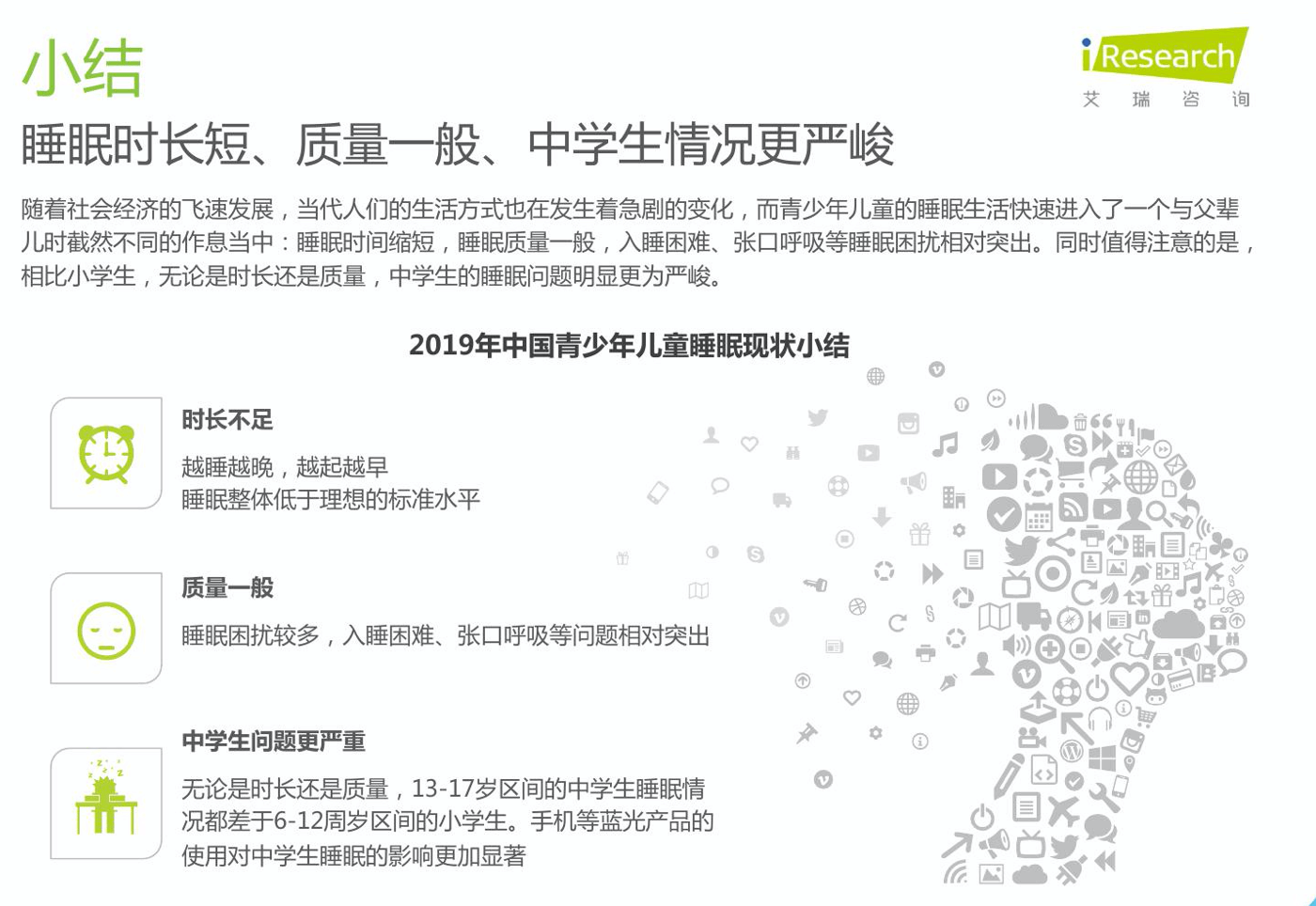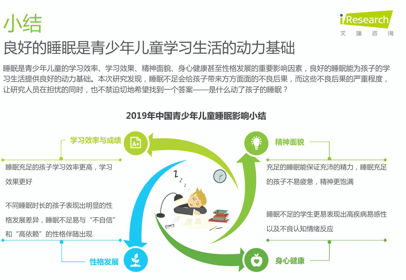从研究结果来看,中国青少年儿童睡眠不足标准已成为常态问题,并产生了一系列的不良表现。咨询报告表面,微观至青少年儿童自身以及家长,中观至学校、企业、社会组织与协会,宏观至政府相关部门,各层级力量都应该对中国青少年儿童的睡眠健康投入更多关注。