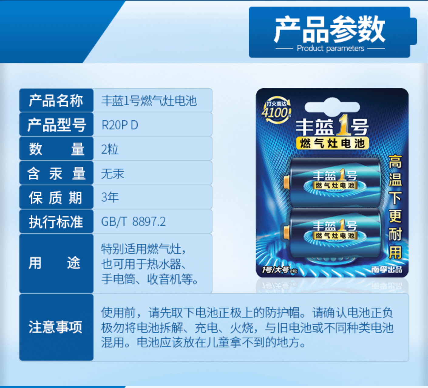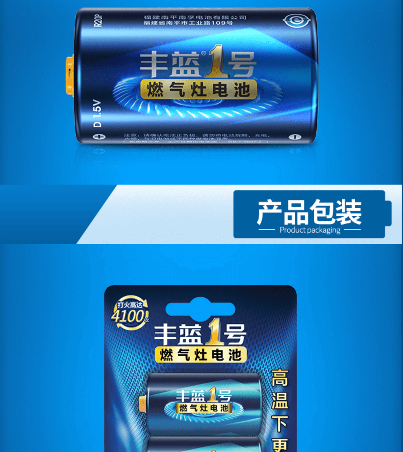 丰蓝1号燃气灶电池由深圳市远益科技有限公司设计,公司成立于2011年,是一家由知名投资公司结合国有资本发起成立的中外合资公司。其立足于国内民用市场,以电池为起点,开创了燃气灶电池这个全新的电池品类。公司专注于燃气灶电池的生产与研发。成立伊始,就推出了中国第一款燃气灶电池。 2014年产品已升级至第2代,具有抗热防漏,一打就着的特点,适合燃气灶打火使用。