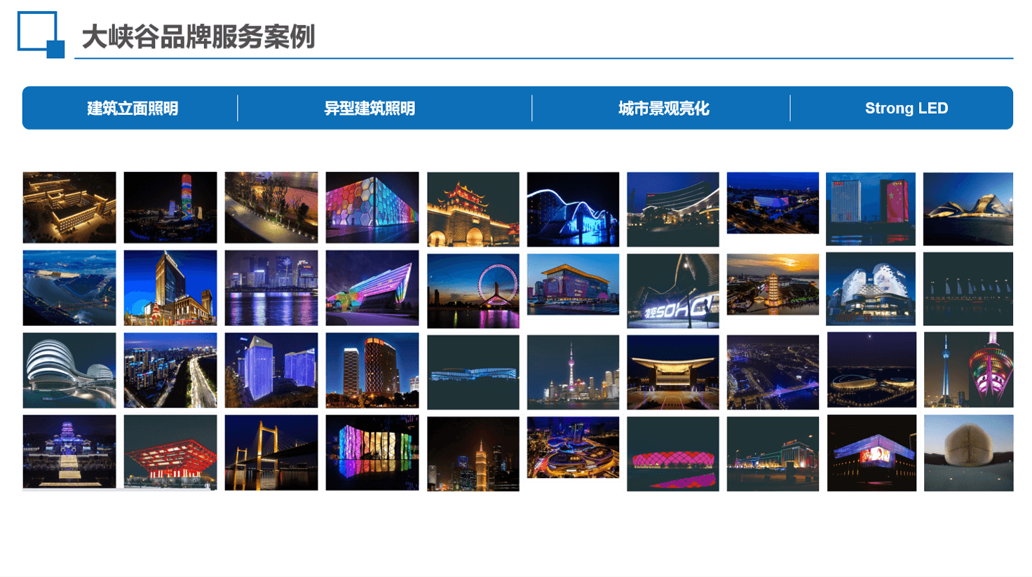 StrongLED大峡谷于2002年成立上海大峡谷光电科技有限公司,2009年成立大峡谷照明系统(苏州)股份有限公司,于江苏省吴江汾湖高新区置地78亩,兴建研发生产基地。从一个初创企业发展成为成功实施照明工程3000多项,销售网络遍布全国的大峡谷照明系统集团,并于2016年在中国台湾正式挂牌上市,成为户外照明设备及控制系统首家进入资本市场的企业。