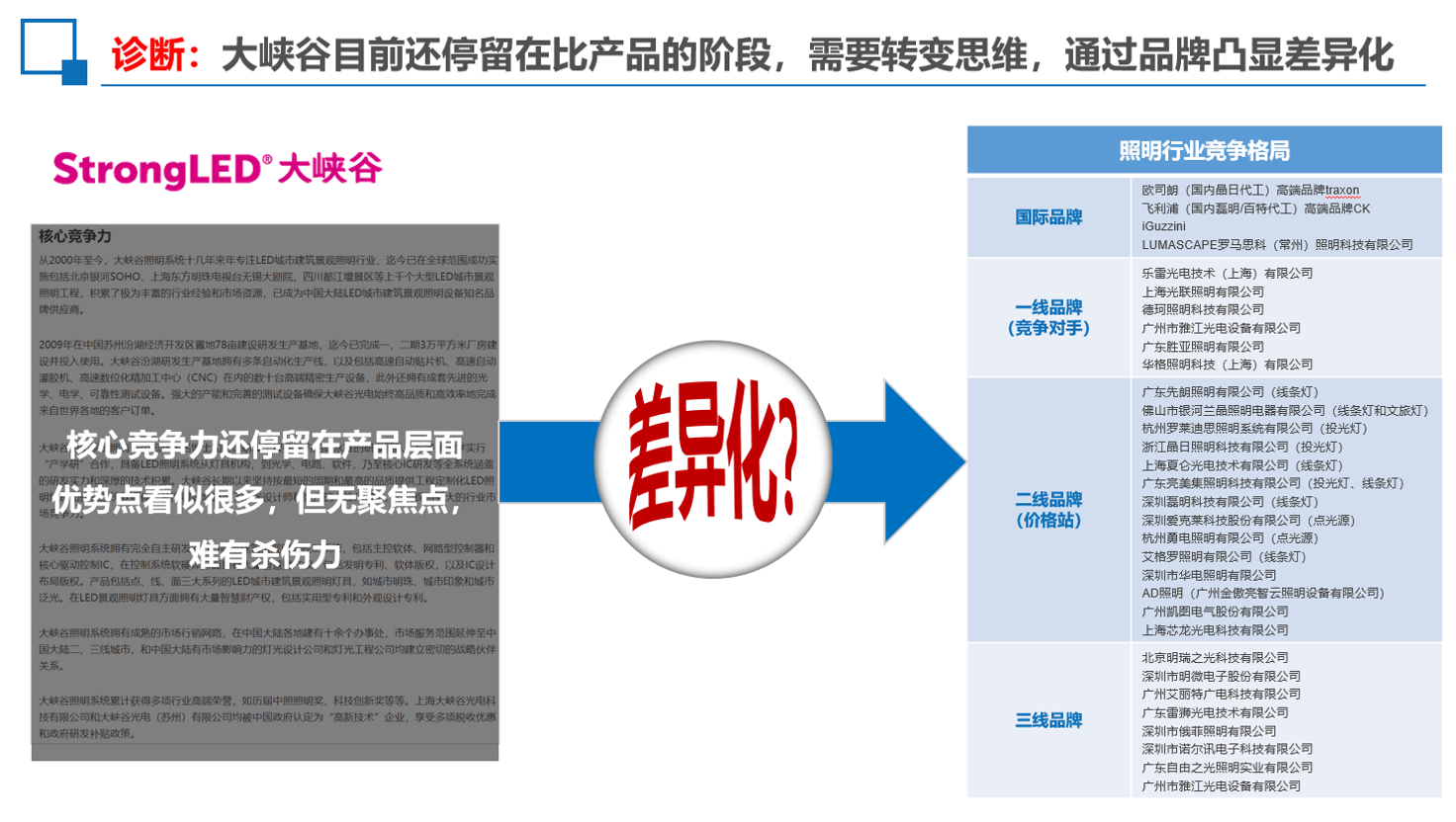 作为较早进入LED照明领域的企业,StrongLED大峡谷有着明显的先发优势。但是随着市场对LED照明的认识和接受,越来越多的企业进入到这一领域,市场的竞争和厮杀越来越激烈。如何继续让StrongLED大峡谷保持领先优势,成为企业当下面临的重大议题之一,也是本次找到行舟品牌的原因所在。