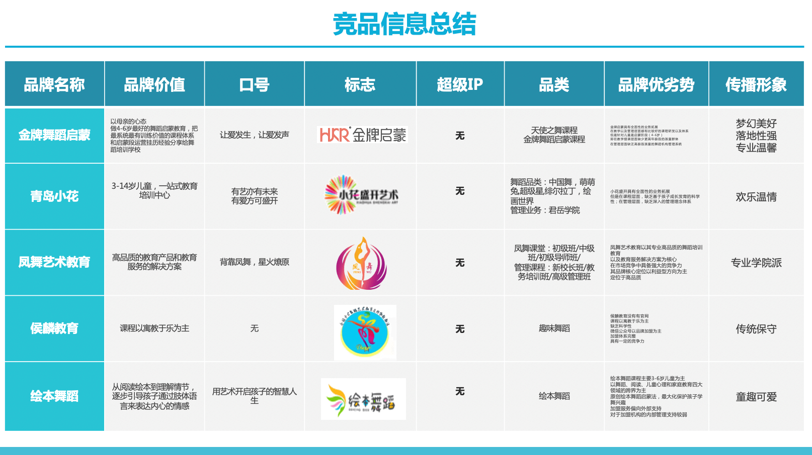 通过行舟品牌的3C战略分析,结合宁蓉教育的核心优势,在教学层面——依据孩子的身体成长发育特点,科学安全系统化的舞蹈教学。管理层面——通过教学管理,教师管理以及内部系统管理形成宁蓉系统的管理优势。形成宁蓉教育基于中国舞细分领域中独有的全面系统性解决舞蹈教学管理的核心优势。