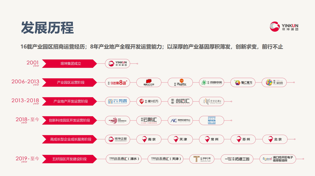 作为全国首批将产业园理论转化实践的企业,南京垠坤集团历时20年专业发展,构建了集产业地产开发运营、企业成长服务于一体的全价值链产业生态体系。现拥有19大自营园区,共计112万㎡的产业载体,优质客户资源超过2.5万家。集团聚焦企业成长服务,以“知识产权+政策申报+税务服务+金融服务+人资筹划+工业选址+行业协会+产业活动+校友经济”的生态服务体系,为企业打造“联接、服务、赋能”的全方位服务系统。全面发力智能制造工业园区开发建设,打造“好产业、好企业、好产品、好服务、好形象”的“五好”工业园区,致力于服务优质中小企业、推动区域产业升级、助力中国工业未来。