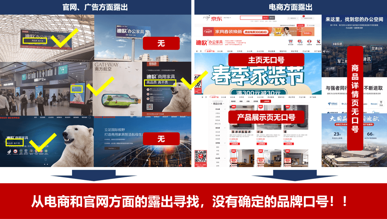 3、品牌的口号不清晰,各露出画面中展示内容不一致;