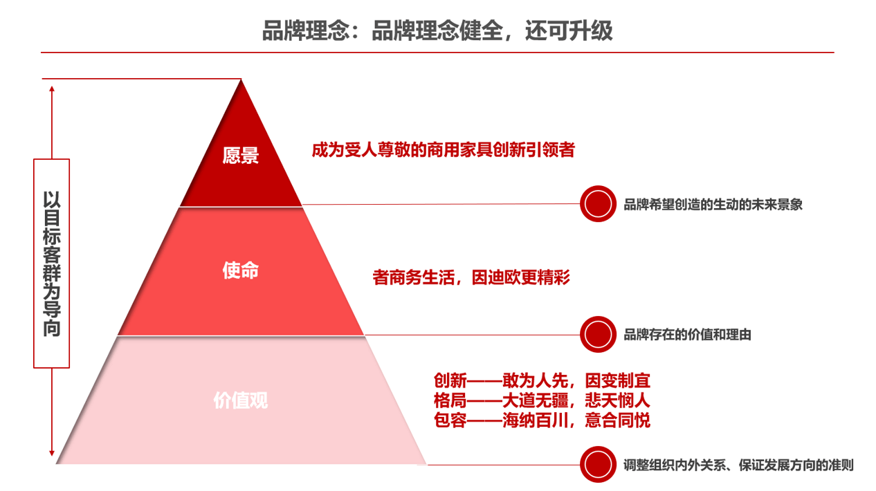 迪欧家具在多年的发展中,更多的重视产品层面的提升,品牌层面的建设工作出现不健全、不系统等问题。企业高层从长远可持续发展考虑,对品牌的建设工作愈发重视,本次找到行舟,希望通过专业的力量,助力品牌全面升级!