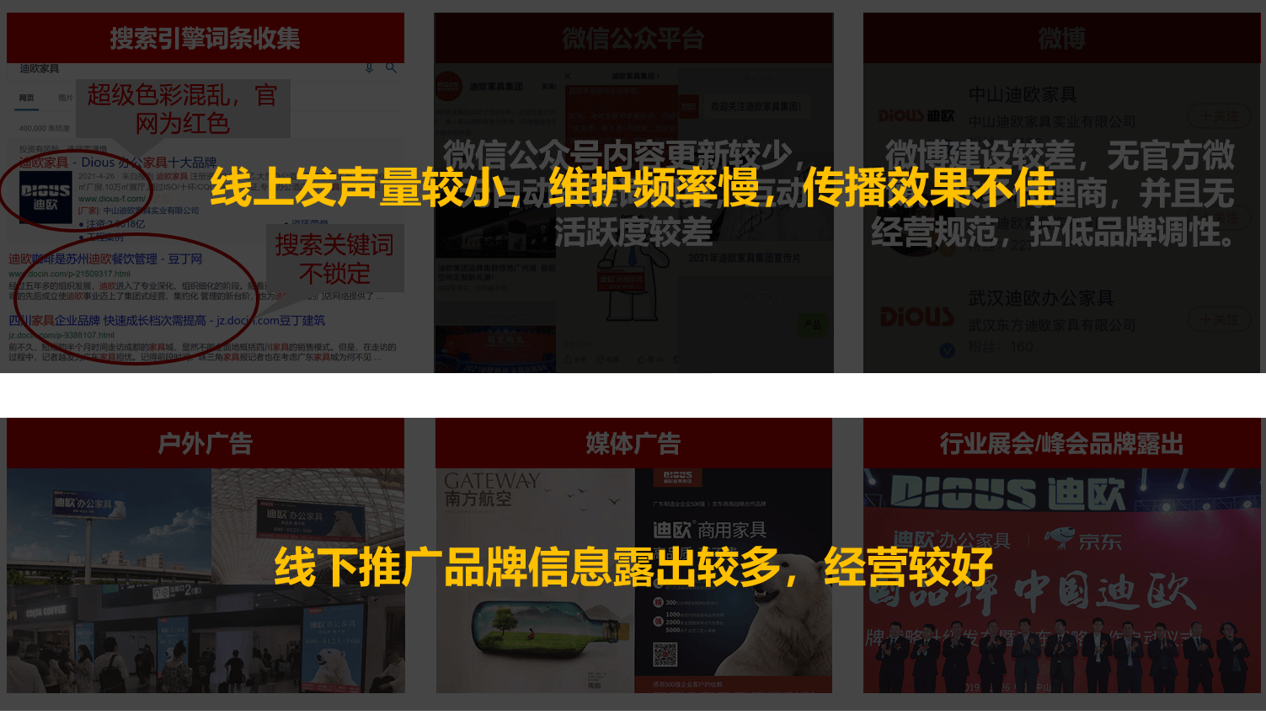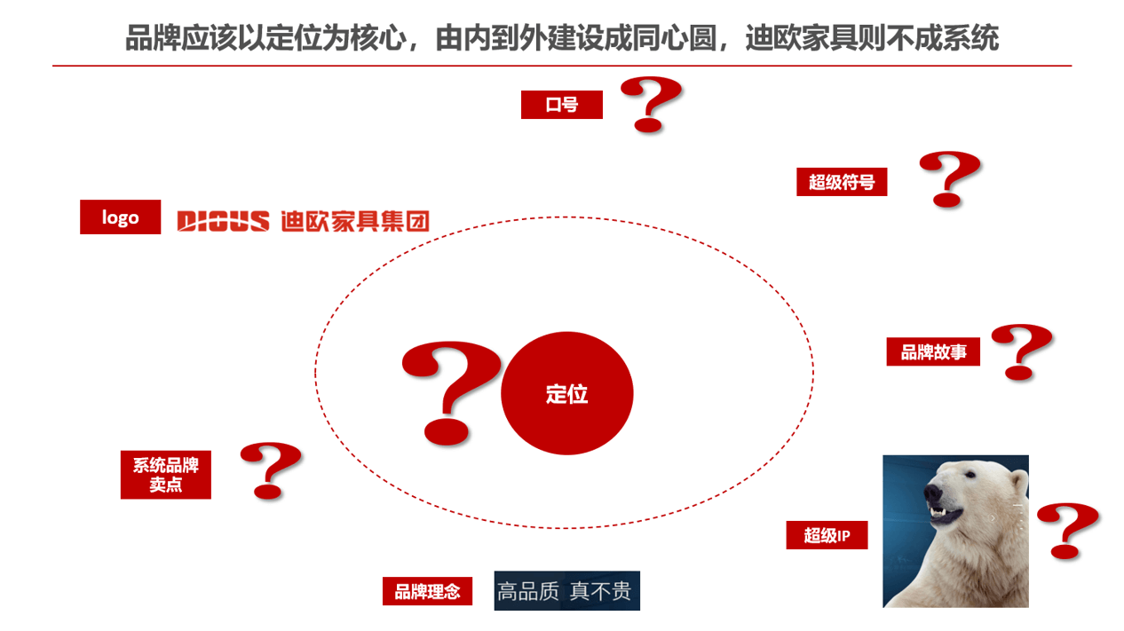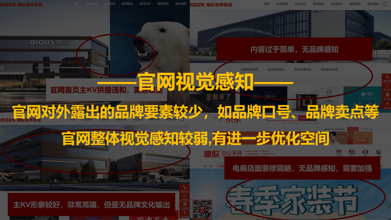 行舟在理解了迪欧家具的需求后,行舟开始对迪欧家具进行初步的系统诊断,仅通过品牌的信息网站、资料咨讯、线上测评获取的信息,初步判断,迪欧家具在品牌战略层面至少存在10大问题: