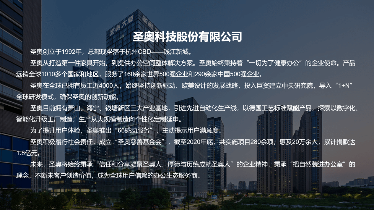 近年来,集团围绕“单聚品、全渠道、多品牌”的营销战略,产品布局以办公家具为核心,覆盖酒店家具、医养家具、教育家具、展示家具五大商用家具板块,先后获得高新技术企业/中国家具协会理事会副理事长单位/广东省制造业企业500强/广东省名牌产品/中国绿色产品认证/产品碳足迹核证声明/GREENGUARD绿色卫士认证等多项荣誉称号。集团营销网络覆盖全国31省/市/自治区,拥有2000多家终端营销服务网点,凭借出色的品质和服务赢得吉利汽车、顺丰集团、万达集团、中国平安等世界500强企业的信赖,连续5年销量刷新行业,成为中国商用家具的创新航母!