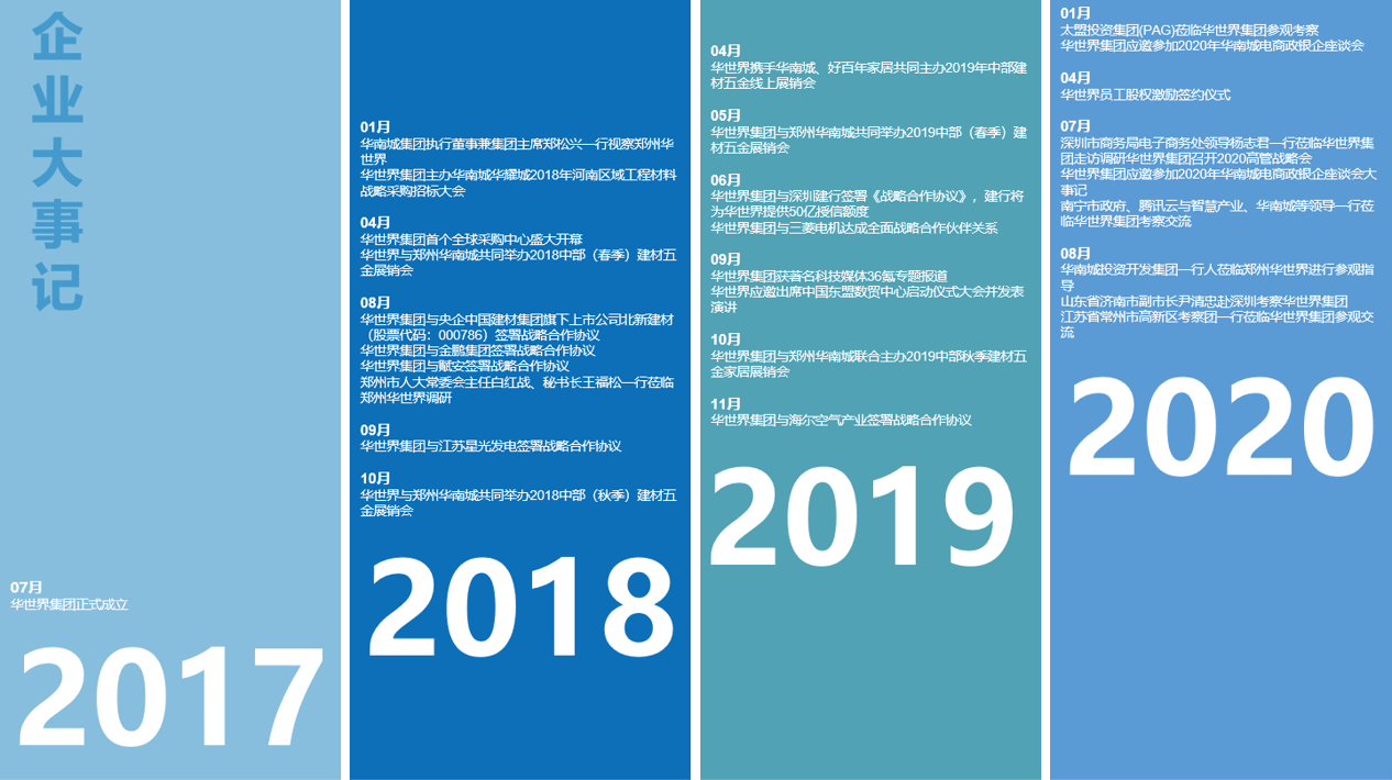 华世界依托于功能领先的互联网平台,秉承“赋能渠道,生态共赢”的理念,建立了以共享订单、共享金融、共享展厅、共享货源等为核心的业务模式。同时,华世界携手众多的互联网科技平台,共同打造全新的产业互联网生态体系,通过技术为生产制造企业和中小微渠道商高效的连接产品、渠道、人脉、资讯、金融和服务等。华世界集团总部位于深圳,旗下设有华立方商业集团、华元素采购公司、华世界网络科技公司等子公司,集团在郑州、西安、重庆、合肥、南昌、洛阳等多个城市建立分支机构,并在不断的高速发展和扩张中,构建全新的“实体+网络+物流+金融”的产业互联网新模式。