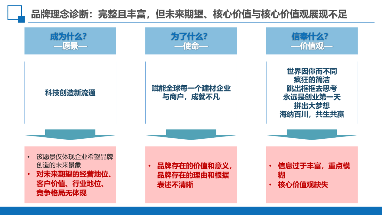 2、理念体系完整且丰富,但未来期望、核心价值与核心价值观展现不足