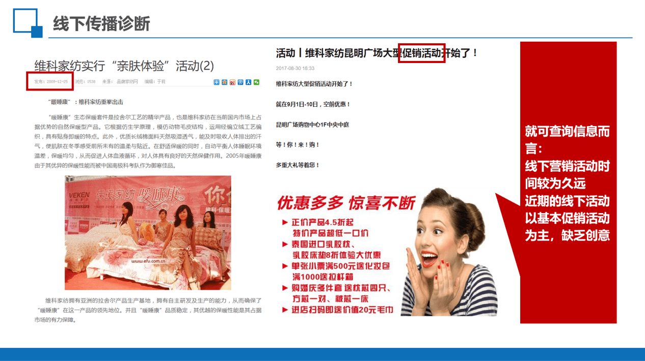 13、线下营销:活动时间较为久远,近期的线下活动以基本促销活动为主,缺乏创意。