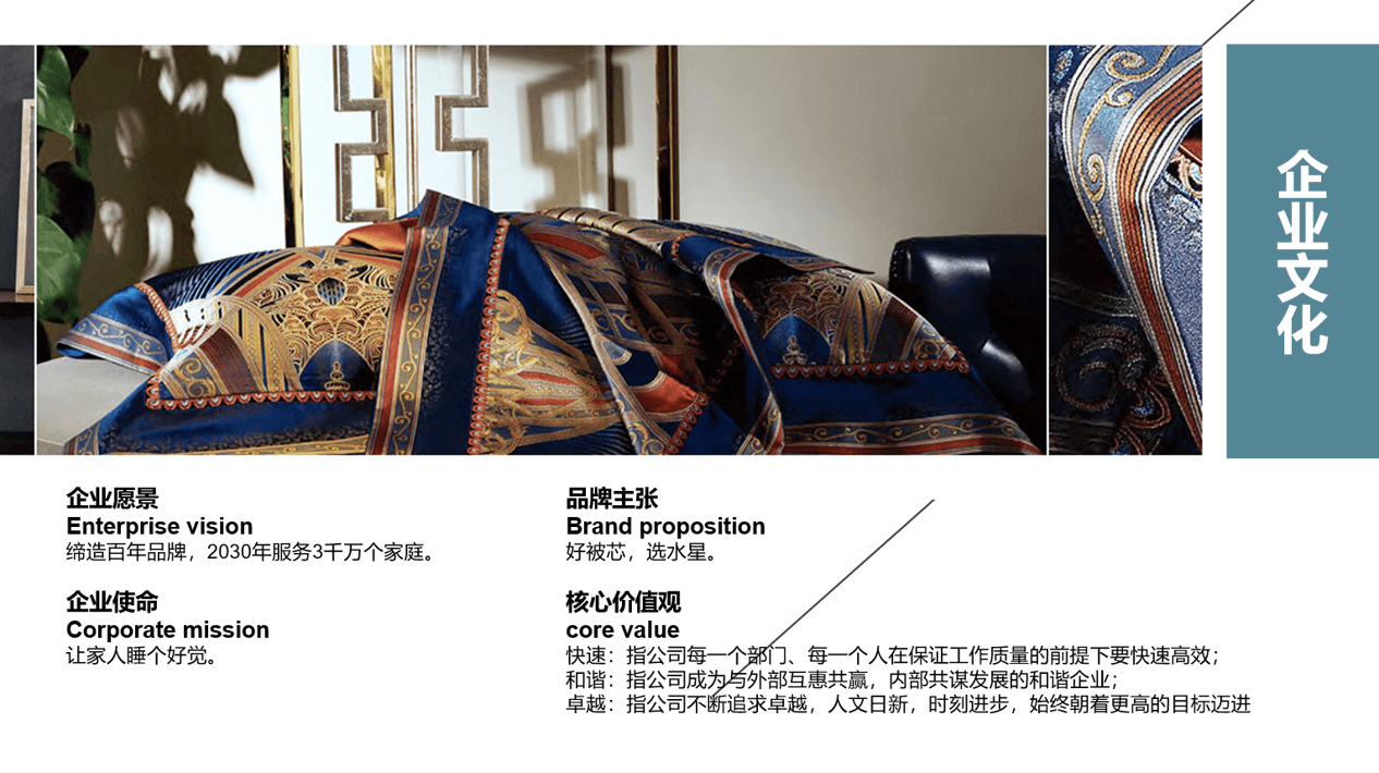 4、品牌理念:集团理念完备,但维科家纺品牌理念缺失;