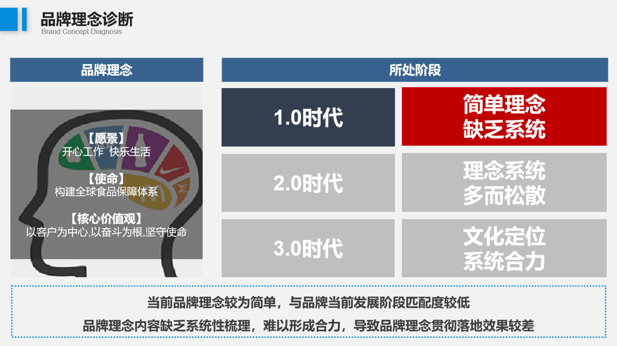 3、品牌理念内容缺乏系统性梳理,导致品牌理念贯彻落地效果较差;