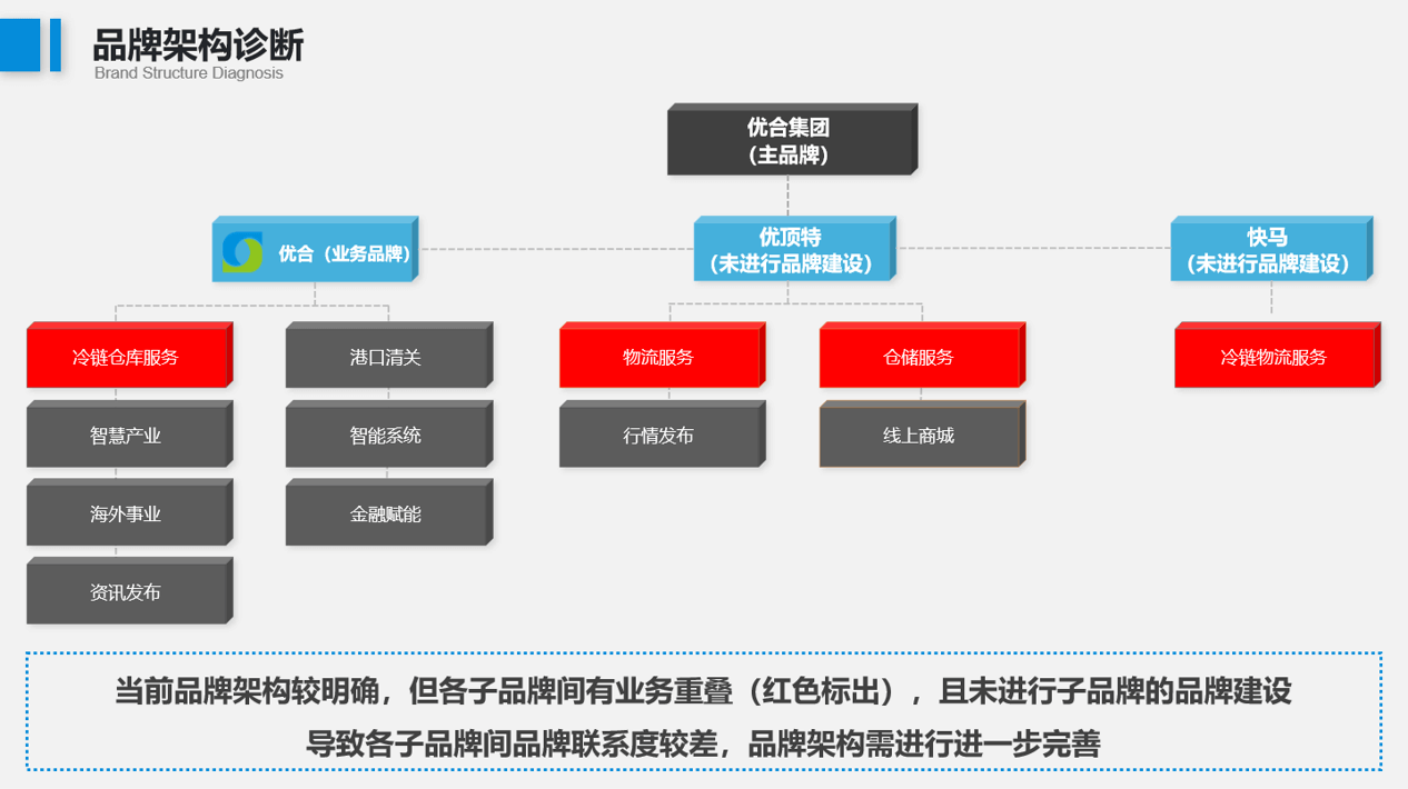 1、品牌架构未进行子品牌的品牌建设,品牌联系度较差;